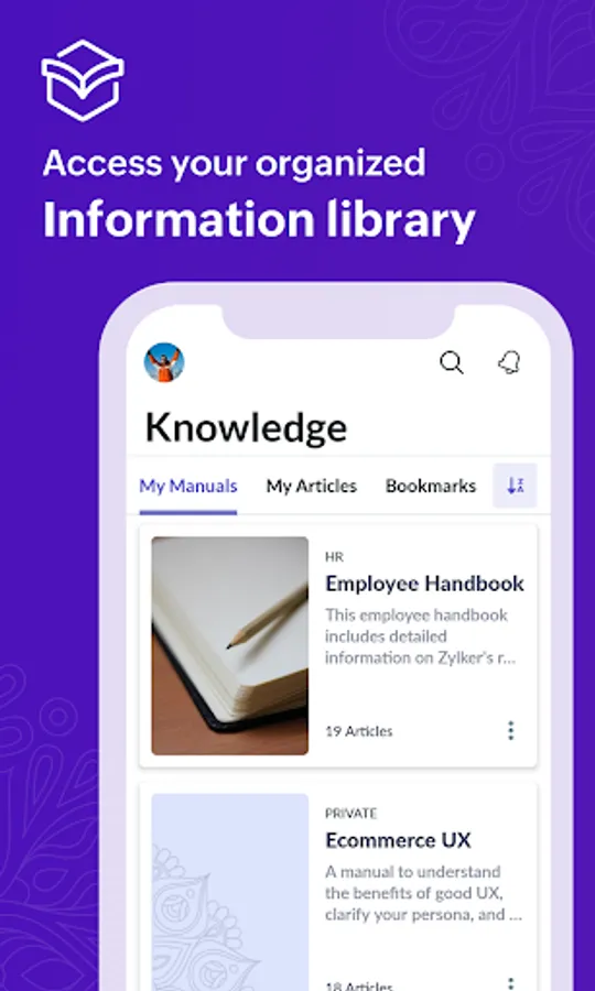 Zoho Learn organizes knowledge in a structured hierarchy using manuals. Information that belongs to a common topic is grouped into manuals to help you find what you need with a couple of clicks.
