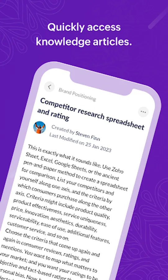 Information resides in the form of articles in Zoho Learn. Easily access articles that belong to a common topic inside a manual.