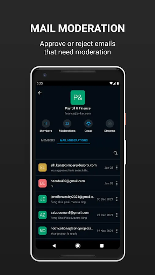 Mail Moderation: Approve/reject emails that need moderation (for those few emails that are too urgent to wait for you to get to your computer)