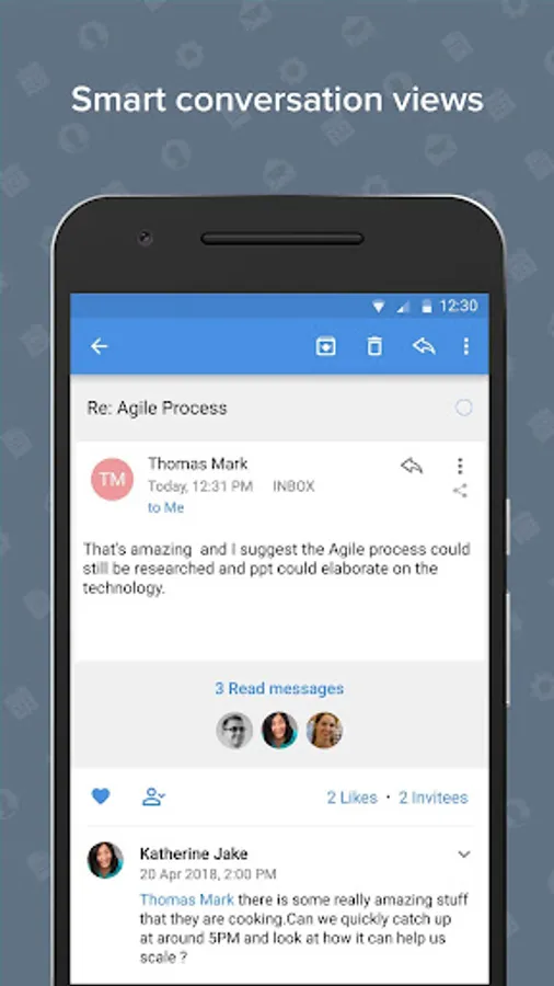 Conversation view - Easily keep up with long email threads with related messages bunched together.