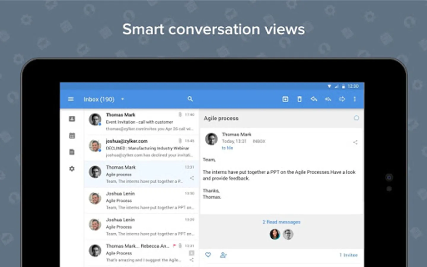 Optimized for Tablets - Zoho Mail is fully optimized for Android Tablets of various form factors.