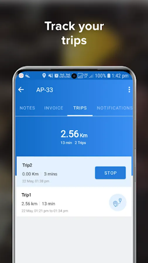 Create trips to record the route taken and keep managers informed about your travel.