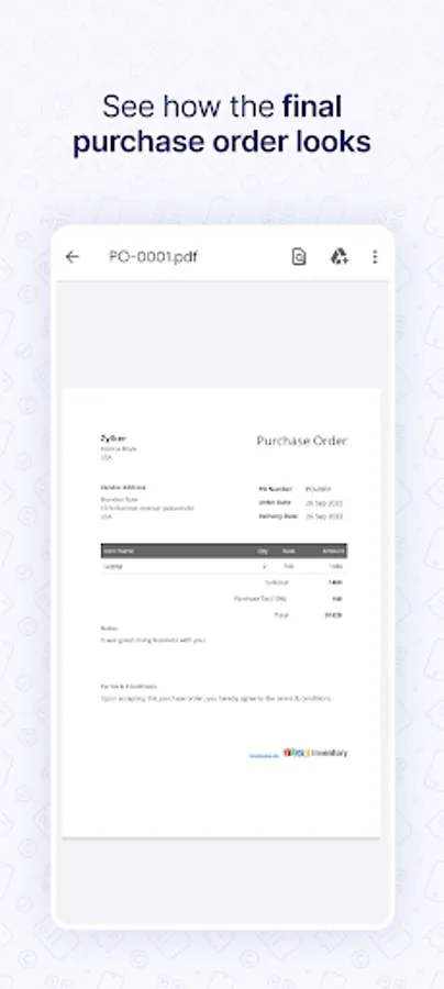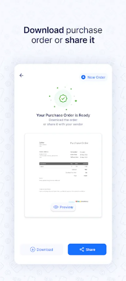 ➤ You can download the PDF of the purchase order to your device, email it or share it with your supplier instantly.