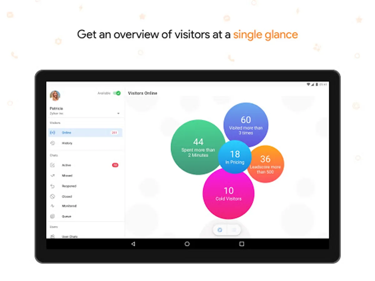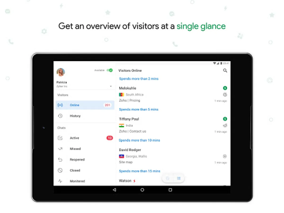 Zoho SalesIQ is an unique live chat software with website visitor tracking, app visitor tracking, lead scoring and analytics all rolled into one for growing businesses. We've built it to maximize the ROI on your content, SEO, Adwords, and email marketing efforts.