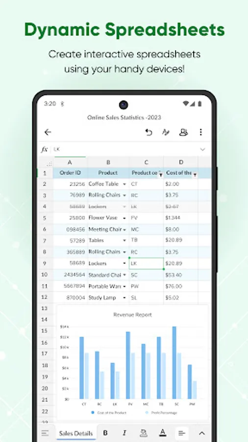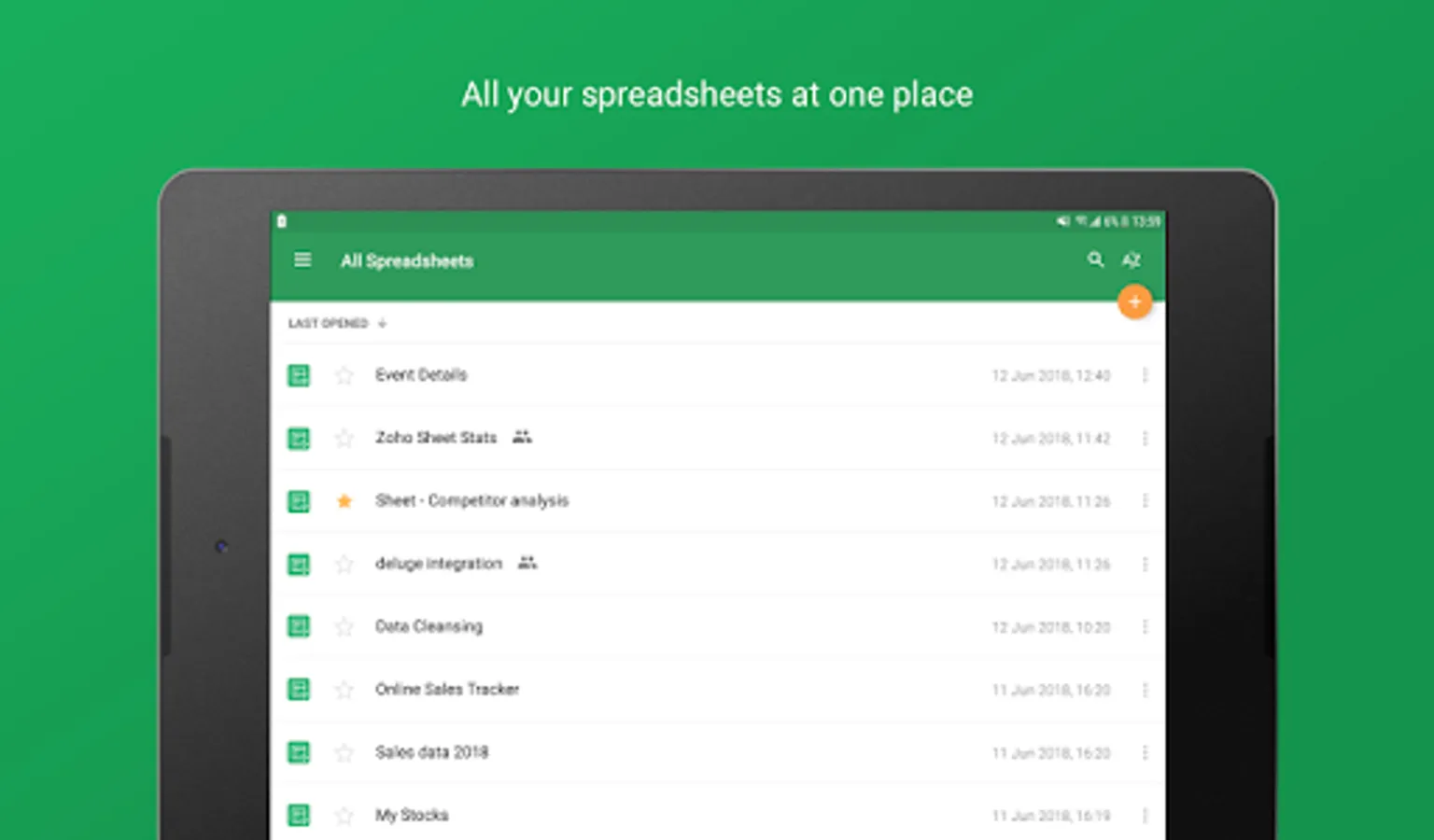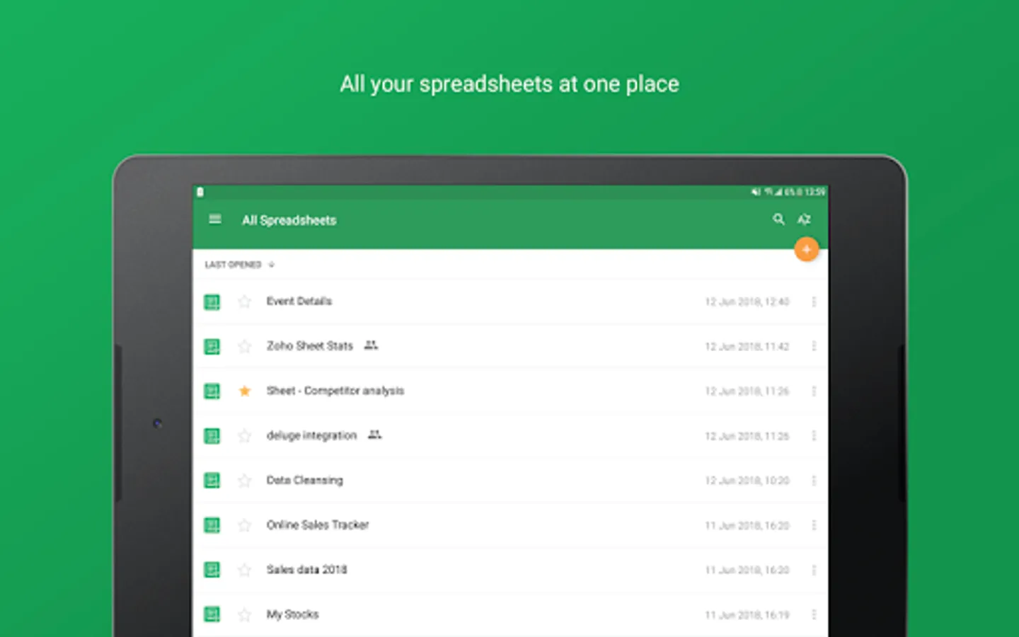 Create, edit, share, and collaborate on your spreadsheets using the Zoho Sheet app for Android devices—smartphones and tablets—for free. Also, open files in your device without having to sign up or sign in and start working from where you left, from anywhere, any time.