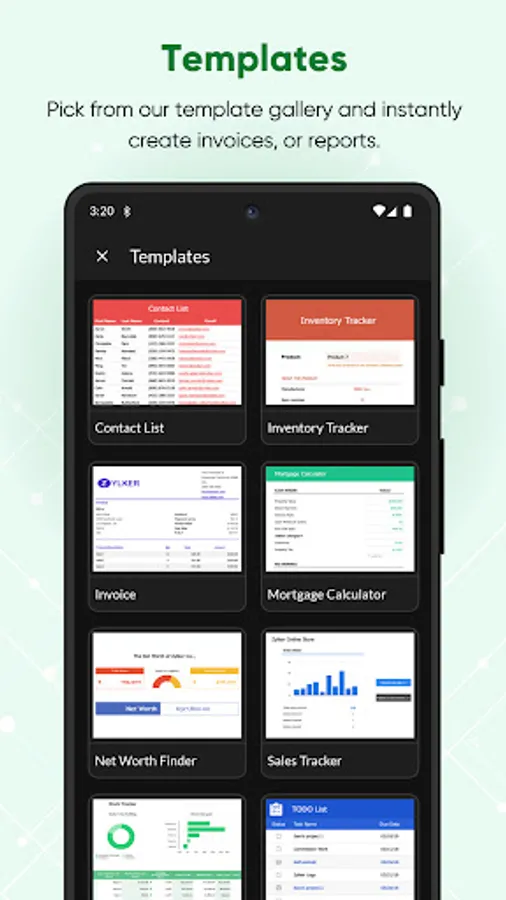 • Enjoy the convenience of the Zoho Sheet app custom-designed for smartphones and tablets.