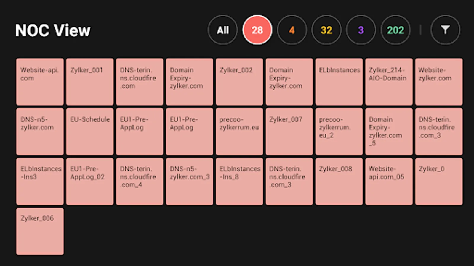 - Visualize the monitor the status of all your IT resources, including websites, servers, VMs, containers, applications, networks, and cloud services using the NOC dashboard