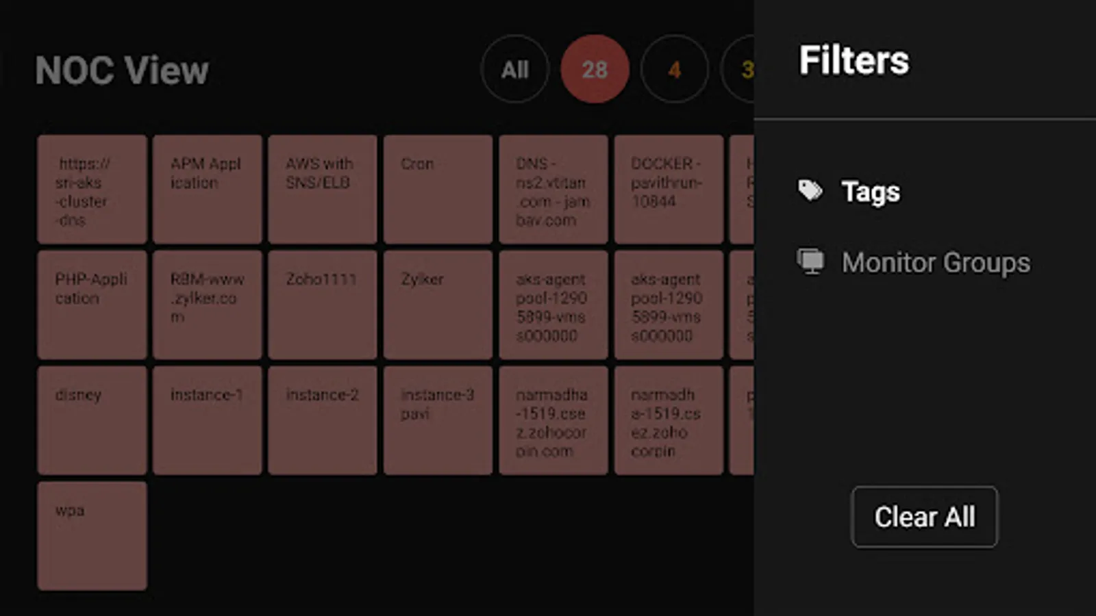- Filter monitors based on their statuses-Up, Down, Trouble, Critical, and