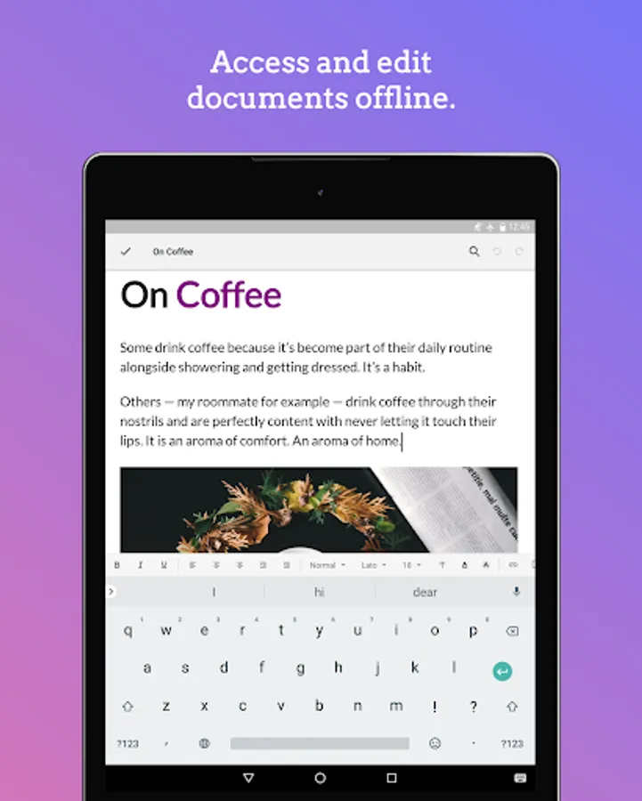 Simple, slick word processing app to write your heart out, bring your friends in and talk it over using comments. Sync docs across devices and access them wherever you go.