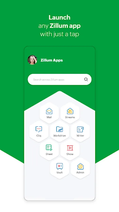 The Zillum app brings together the entire suite of seven apps in one place so you can launch any of the apps in the Zillum bundle with a single tap. The Zoho apps included are Mail, Cliq, WorkDrive, Writer, Sheet, Show, and Vault for all users, and the Mail Admin app for family heads only.