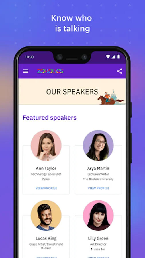 The Zoholics mobile app gives attendees a digital experience to remember. Get event information and have real-time interaction with speakers from your mobile device.