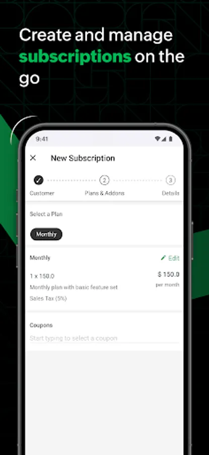Create multiple pricing plans and add-ons that customers can choose from to sign up for your products and services. You can also offer trials and provide coupons as additional customer incentives.