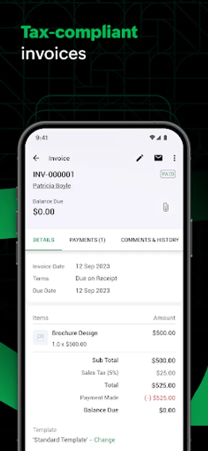 Create professional invoices in seconds with our ready-to-use templates, that reflect your brand image, builds trust with customers, and encourages payment.
