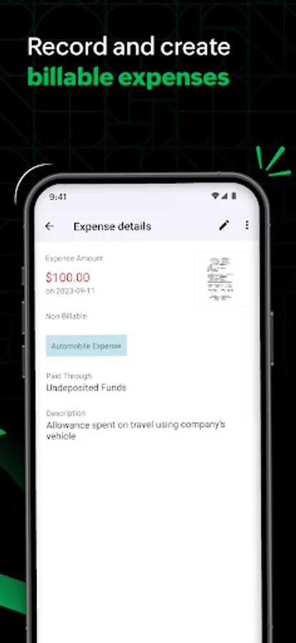 Keep track of your unbilled expenses until they're reimbursed by your customers. Auto-scan your expense receipts and calculate your travel expenses based on GPS and mileage.