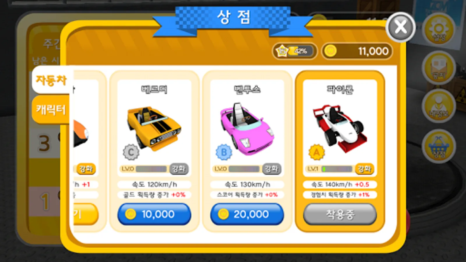 You can buy characters and carts with gold from racing play, and upgrade to enjoy faster, more versatile carts.