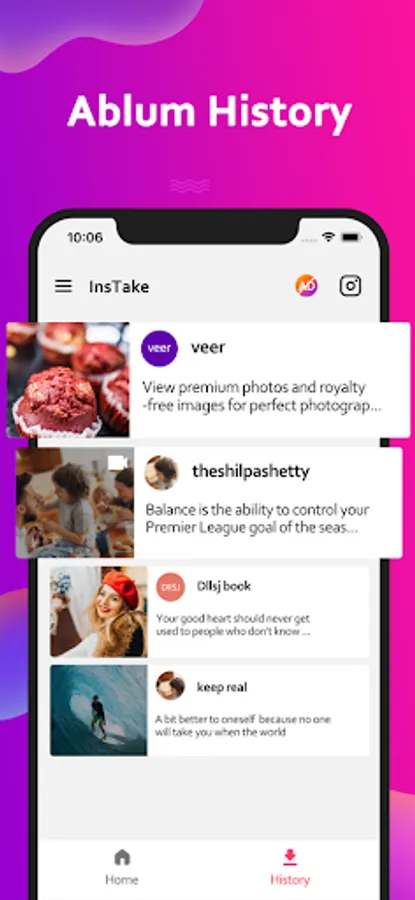 Free repost app for Instagram, repost or download photos, video and reel from you Instagram account for free!
