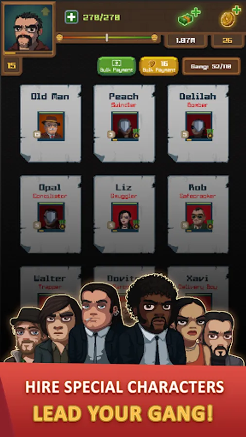 🔥 Rise to Power: Embrace the adrenaline-fueled gangster war as you lay the foundations of your criminal enterprise in this mob rpg. Handpick a crew of hardened gangsters, each with their own unique skills and abilities. Train them, mold them into a formidable force, send them to the missions and watch as your influence spreads like wildfire.