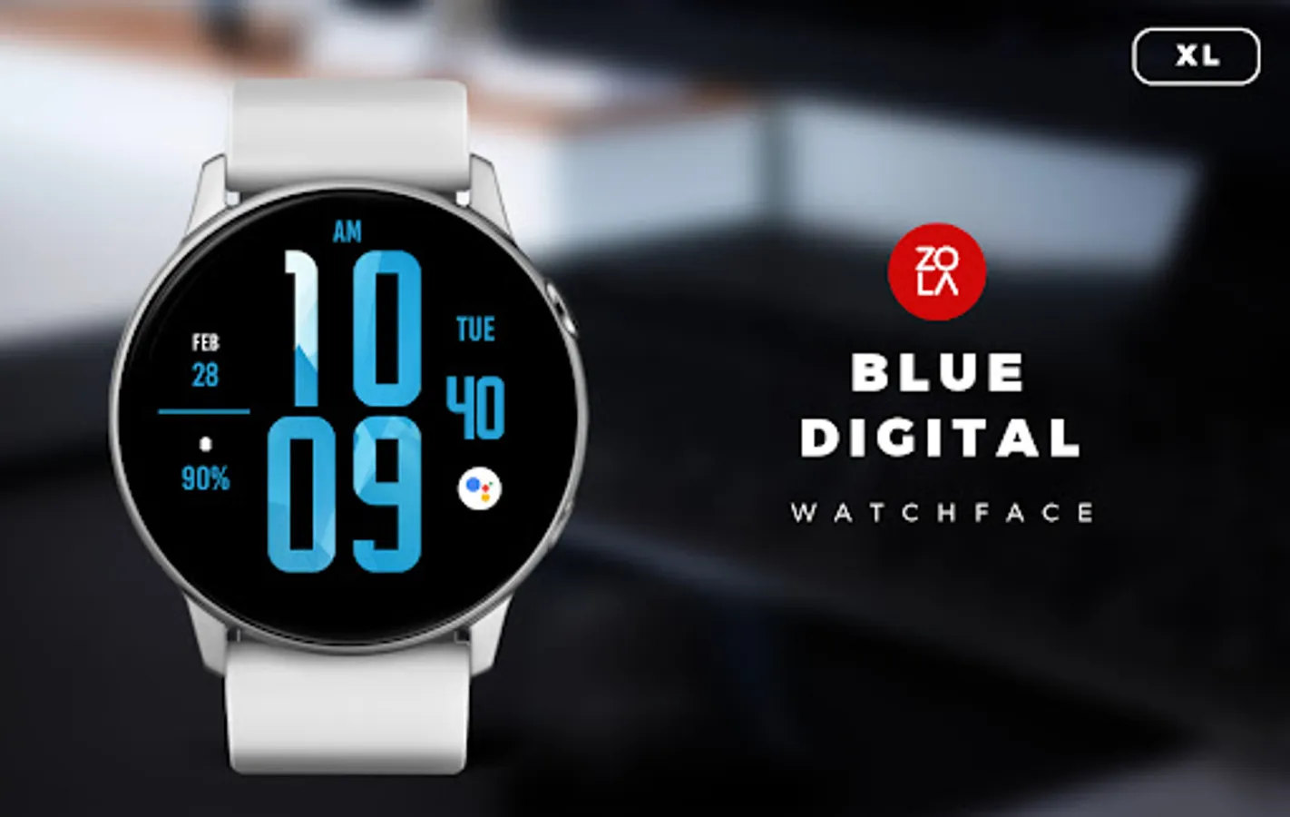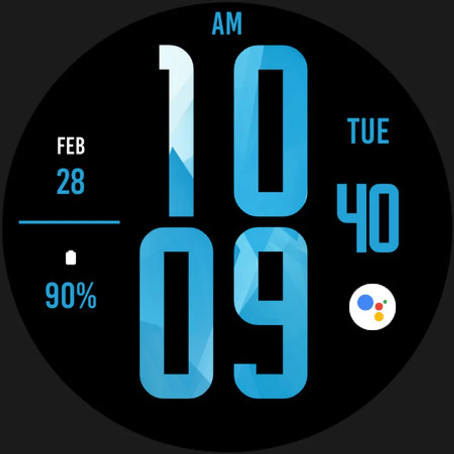 Blue Digital XL Watch Face for Wear OS, beautiful extra large digital watch face made with blue modern design focused on legibility and usability.