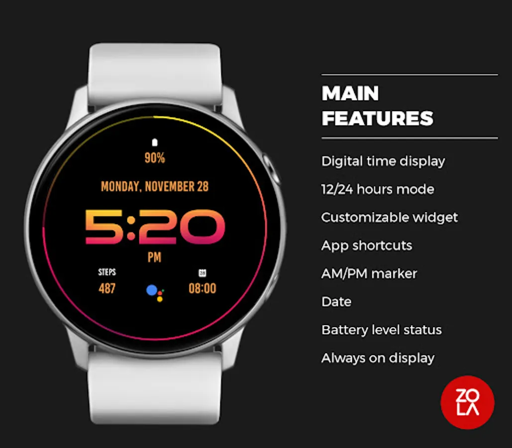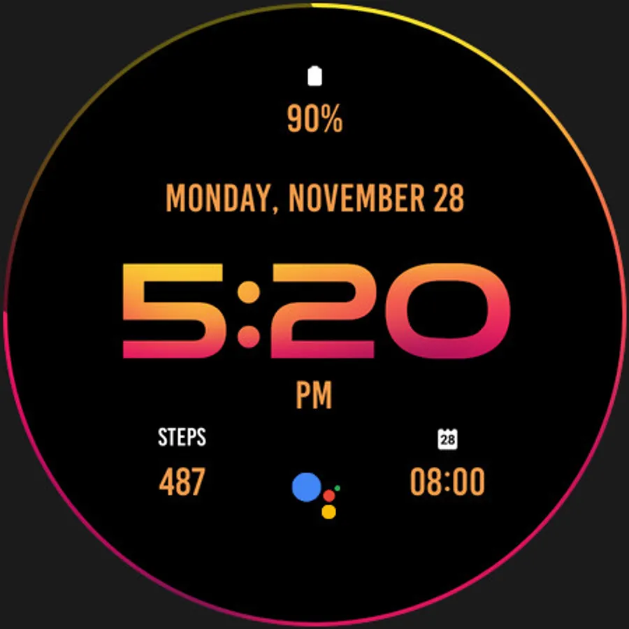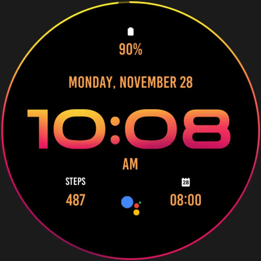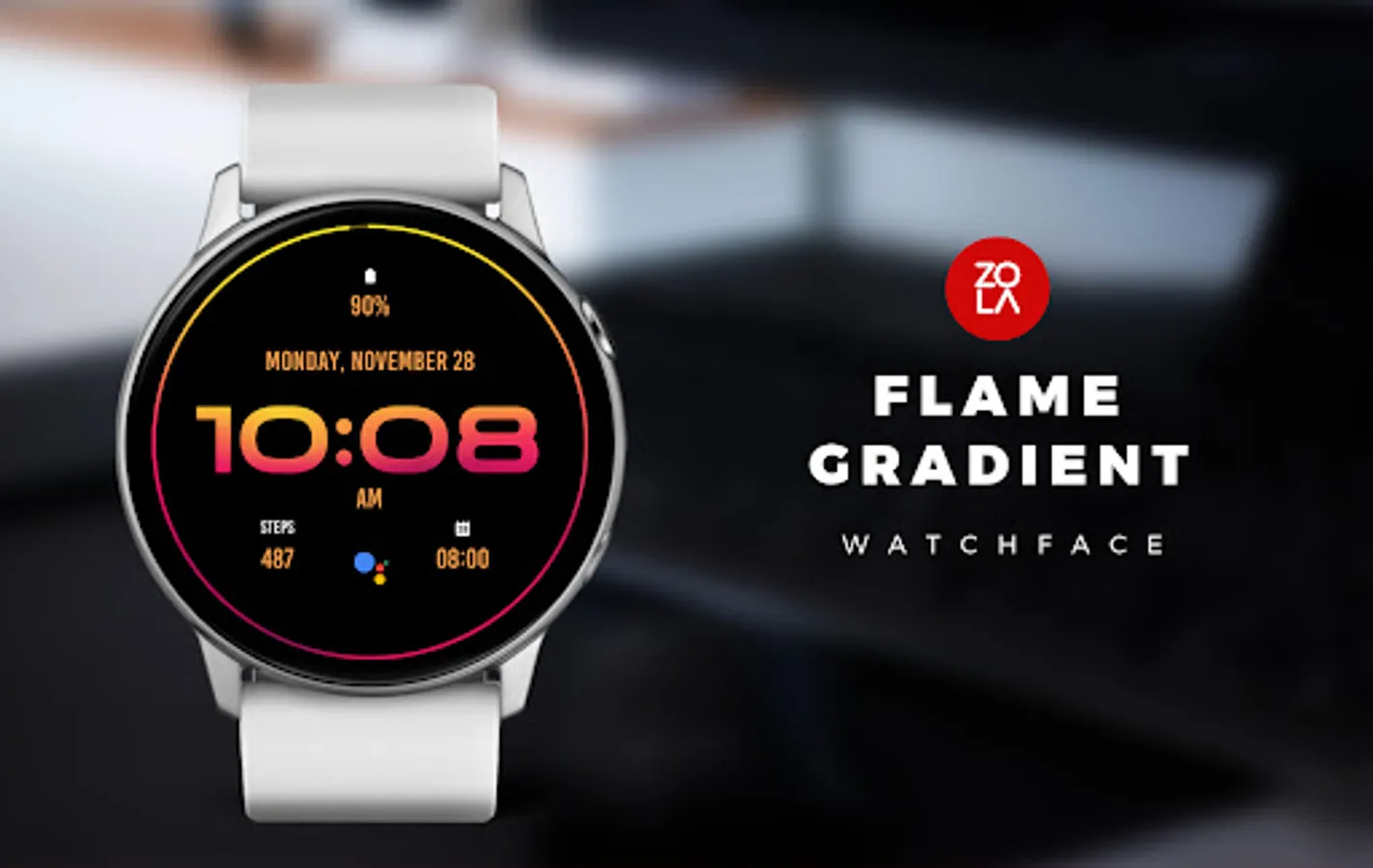 Flame Gradient Watch Face for Wear OS, beautiful digital watch face made with modern design focused on legibility and usability.