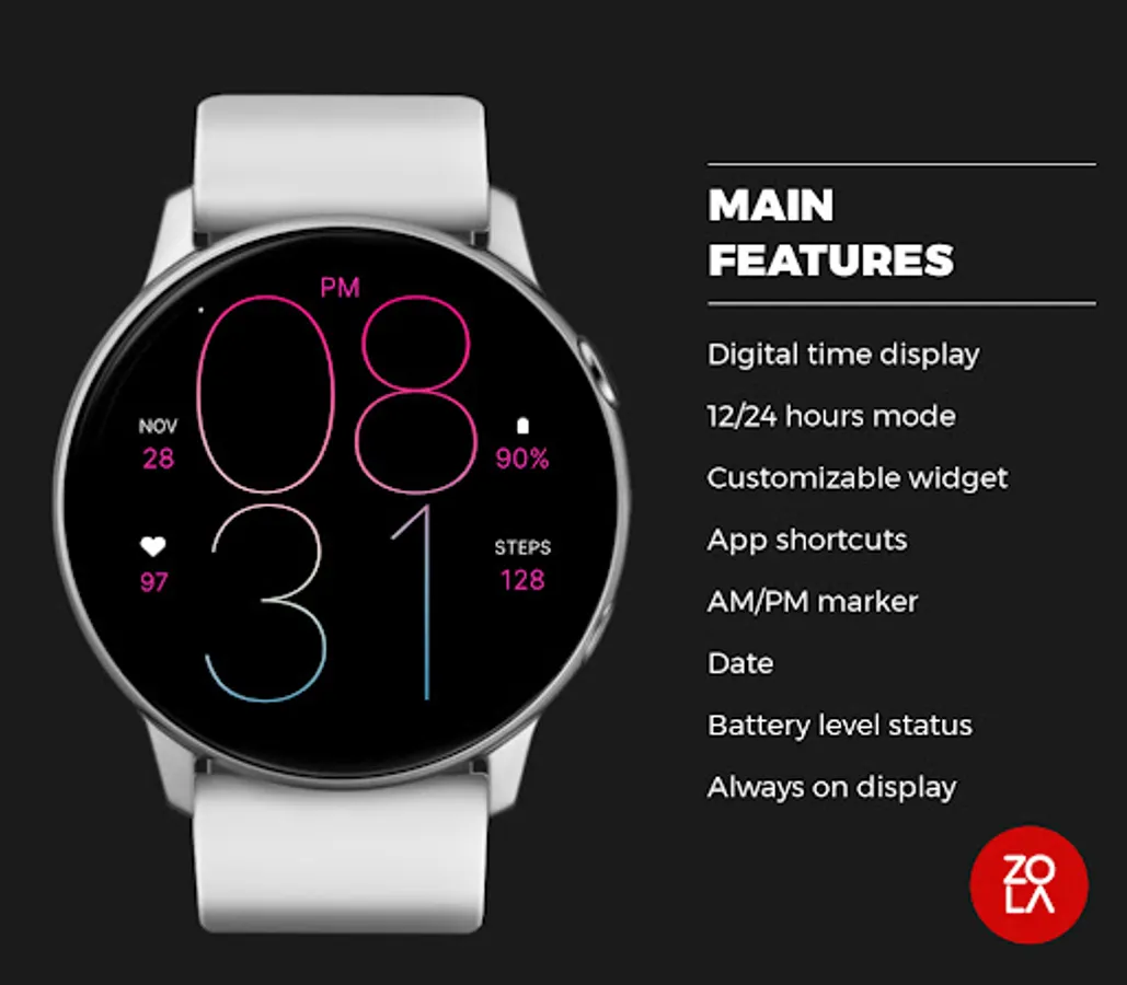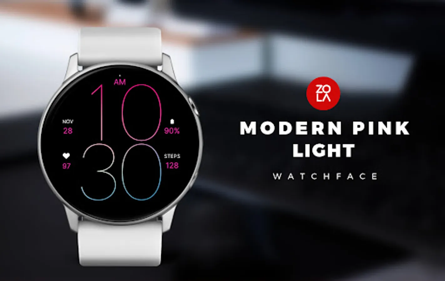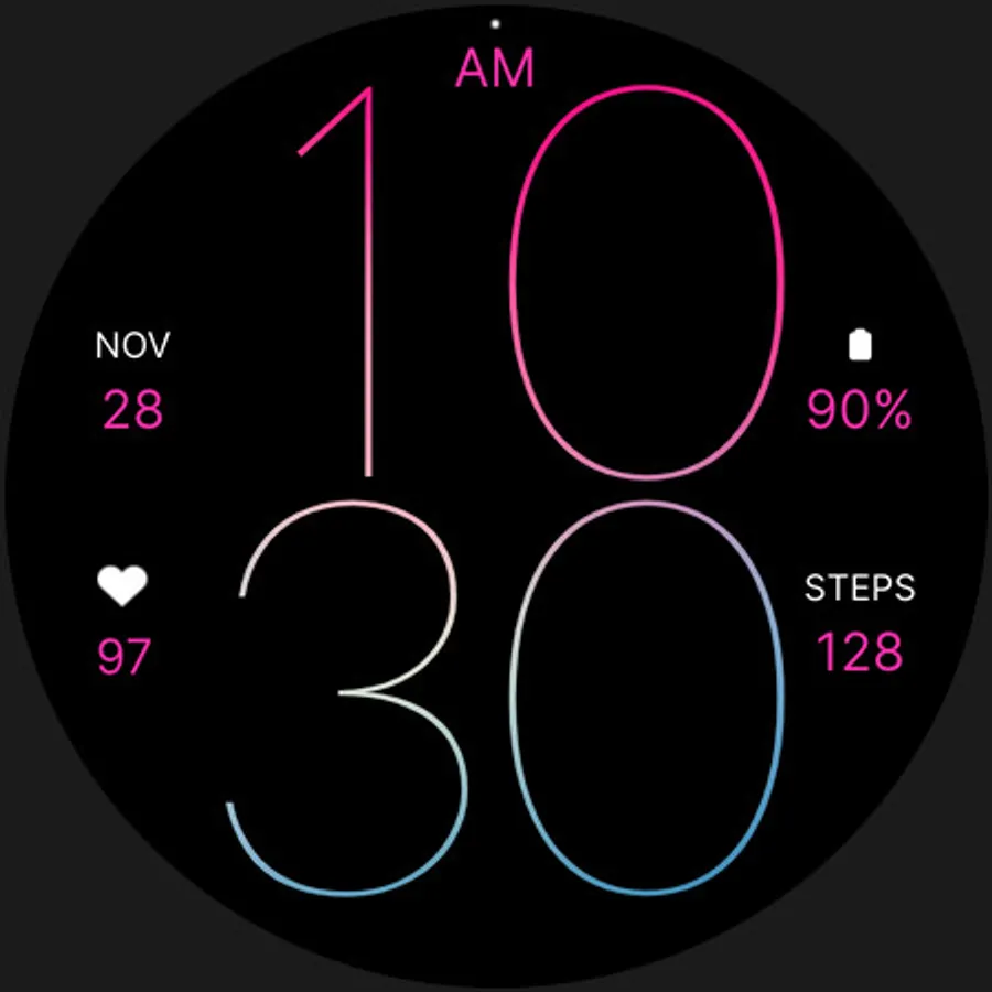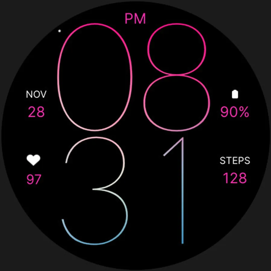 Modern Pink Light Watch Face for Wear OS, beautiful digital watch face made with minimal design focus on legibility and usability.