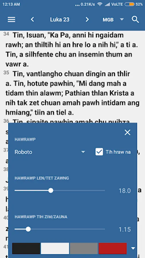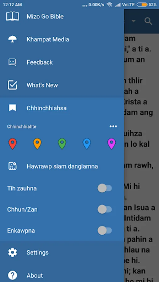 - Copy/Share lamah Bible chang bula Bible version tihlanna dah a ni a, chang zat lang turin a copy theih a, copy leh share-a link tel lo-a copy/share turin set-na dah a ni bawk.