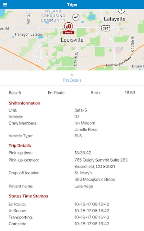 ZOLL Respond allows existing ZOLL customers the ability for response crews, dispatchers, and medical facilities to view and respond to their trips and navigate to pick-up and drop-off points. ZOLL Respond is integrated with RescueNet Dispatch, which allows the dispatcher to communicate with field crews using multiple methods. ZOLL Respond offers a robust new feature set including not only verbal communication, but also non-verbal communication via chat, Push-To-Talk that help cut out unnecessary phone calls. Live streaming video communication, too, allows field users to directly connect to doctors at medical facilities. ZOLL Respond uses Google map-based routing, traffic alerts, satellite view, and turn-by-turn directions. A detailed view allows supervisors to see the location of their crews, the current response state of their crews, and trip details associated with all of their crews and vehicles.