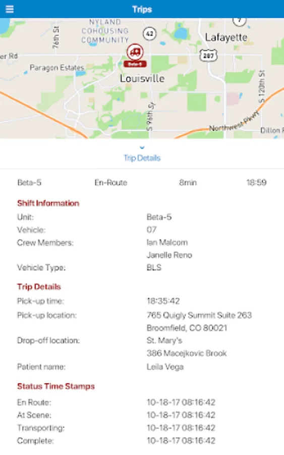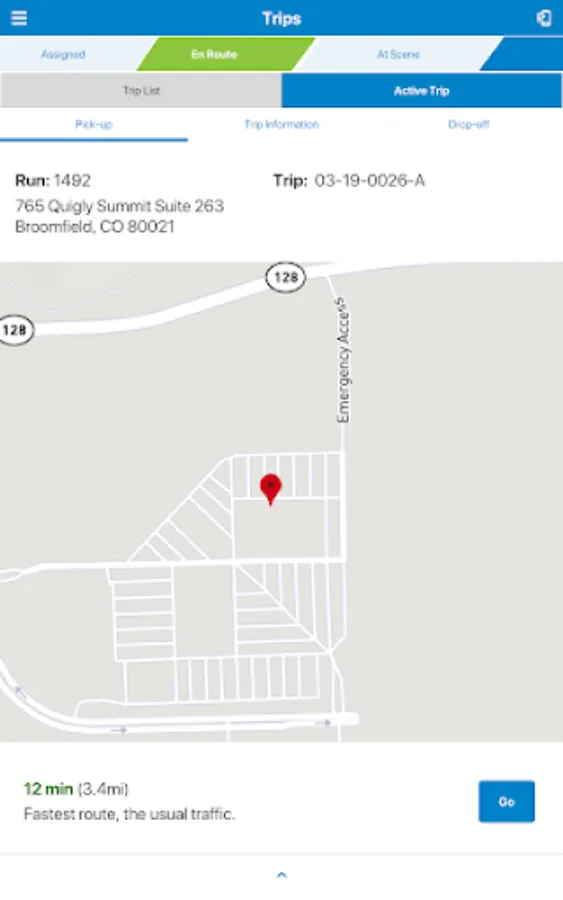 ZOLL Respond (ZOLL Dispatch) allows existing ZOLL customers the ability for response crews, dispatchers, and medical facilities to view and respond to their trips and navigate to pick-up and drop-off points. ZOLL Respond is integrated with ZOLL Dispatch, which allows the dispatcher to communicate with field crews using multiple methods. ZOLL Respond uses Google map-based routing, traffic alerts, satellite view, and turn-by-turn directions. A detailed view allows supervisors to see the location of their crews, the current response state of their crews, and trip details associated with all of their crews and vehicles.