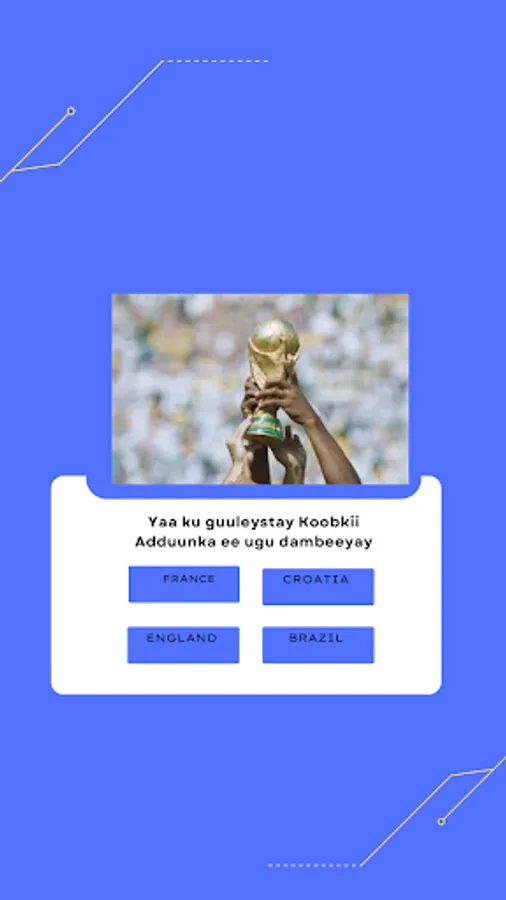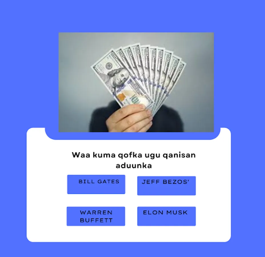 Su'aalaha waa kuwo gacanta lagu doortay oo waxaa loogu talagalay in lagu tijaabiyo aqoontaada guud oo ballaaran.