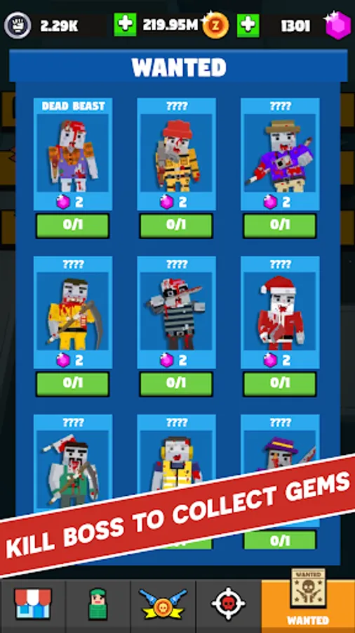 ● Seven brave surviving zombie hunters. Each has a 4 unique weapons;