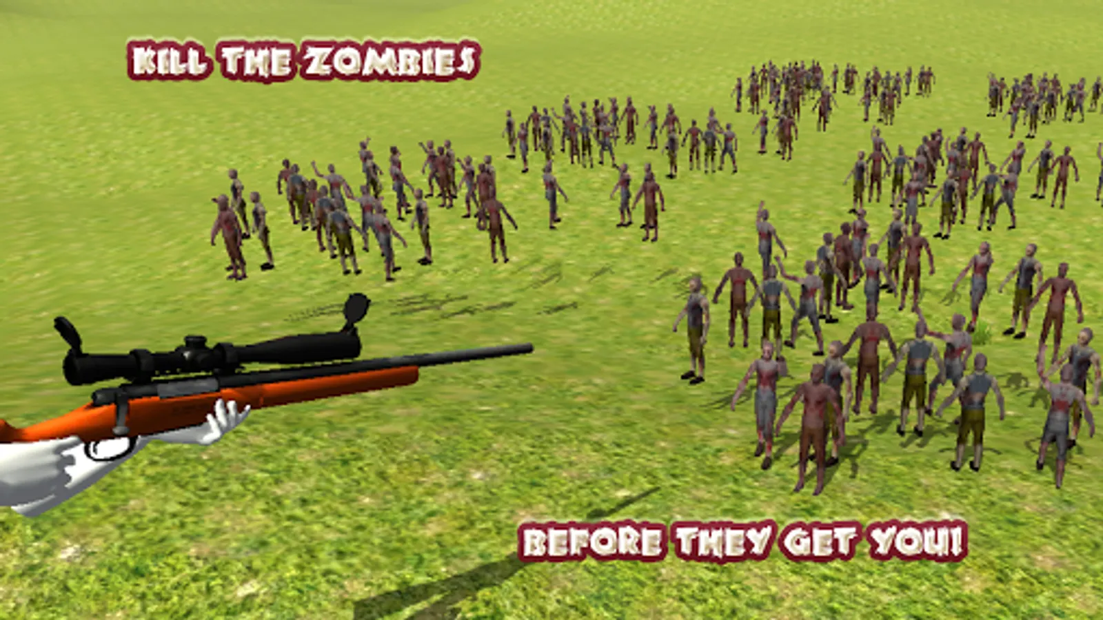 Zombies mob attack! Did you ever wonder what it would feel like to be attacked by a mob of hungry zombies? The zombie mob is headed straight for you. You are the lone sniper in charge of saving the city. You must defeat all the Zombies or face the consequences. They have taken over the town, and it is up to you to rescue everyone. Do your best to hunt down all the zombies. Defend yourself as long as possible. All in fun 3D graphics and game play.