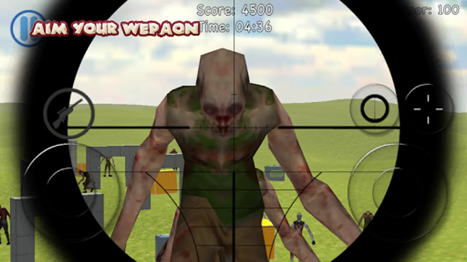 Take-down as many zombies as you can. Feed free to practice as much as you want before hunting for the real thing. The Practice level allows you to perfect your aim and hunting skill. Good luck sniper!