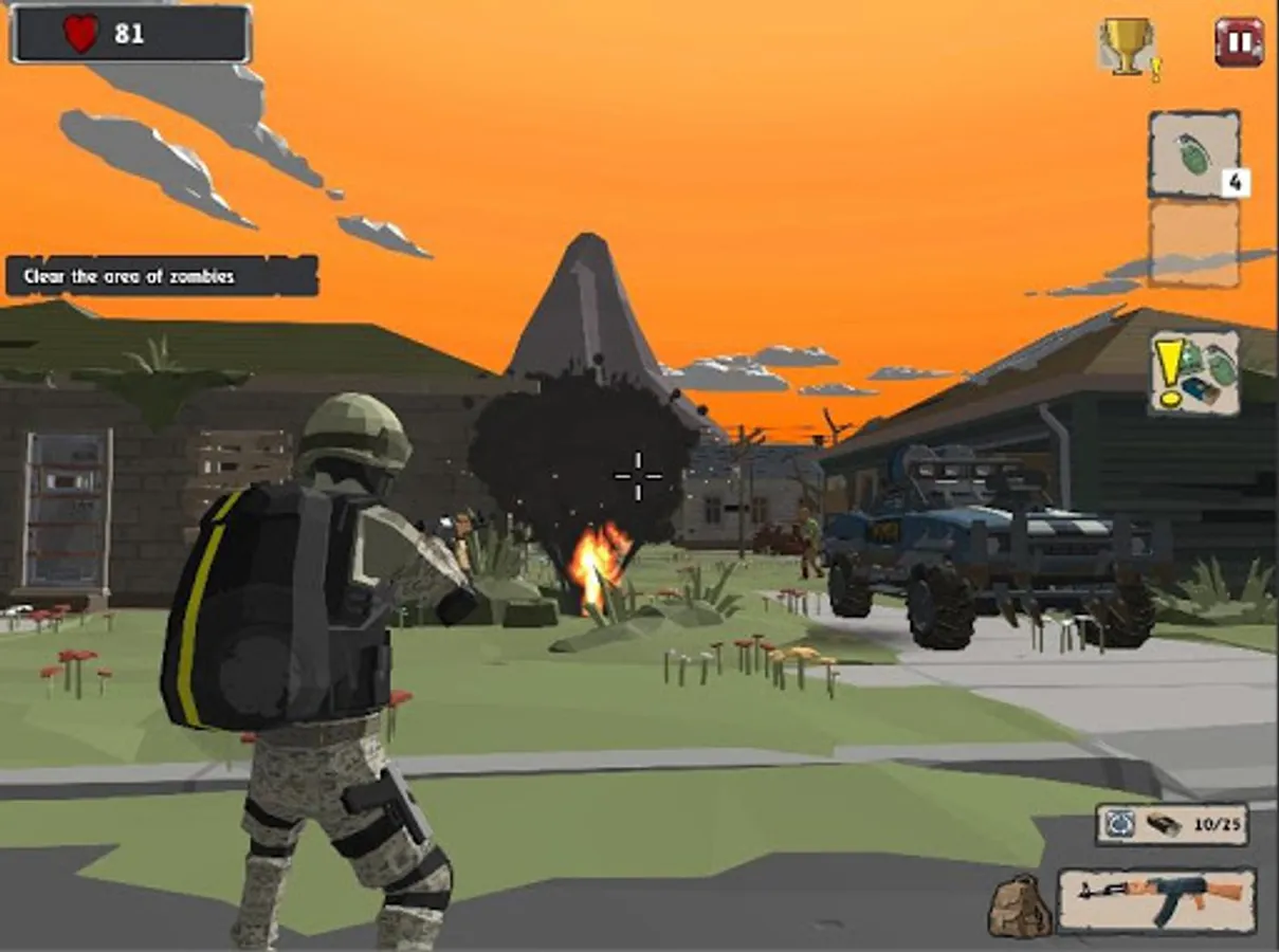 Your main enemies are zombies that have invaded the whole world. You can come across them anywhere, they are everywhere, and most importantly-they are many. You can choose from a variety of firearms and throwing weapons, grenades, grenade launchers and flamethrowers, so you can destroy and shoot them. But during the battles, the deads will cause you a lot of damage, and various first aid kits and medicines will help you in the fight. As the story progresses, more and more weapons, equipment, and equipment for fighting zombies will become available to you. You will be able to upgrade your skills - whether you are going to move faster, carry more weapons with you or heal faster - everything will be in your choice.