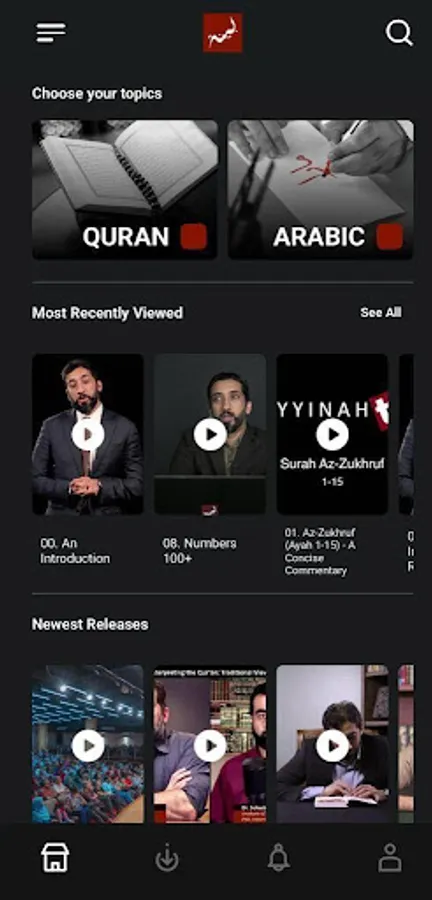 Bayyinah BTV mobile app brings you instant access to all the content available on our Bayyinah BTV website and much more. Wherever you are, you can access all the episodes you'll need on your learning journey with the Quran. Whether you want to start with our tried and true Arabic curriculum, explore a Concise Commentary on each and every surah of the Quran or take a Deeper Look into the miraculous words of Allah, you will have everything at your fingertips.