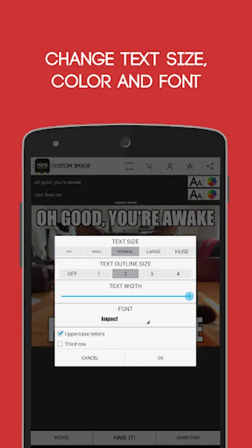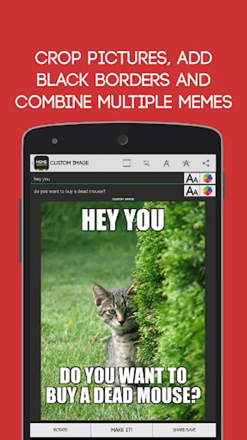 With Meme Generator you can create the funniest memes and share them with your friends through your favorite apps.