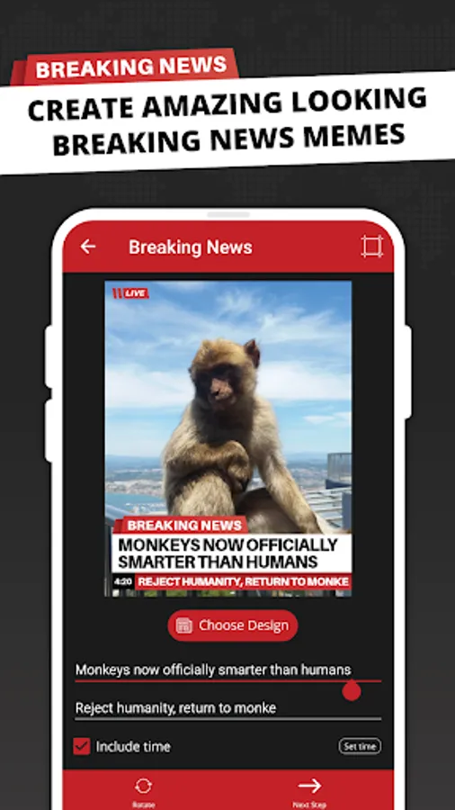 DISCLAIMER: This app is NOT intended for creating fake news nor does it encourage the creation of fake news. The purpose of this app is entirely comedic, specifically to create the well known breaking news meme format.