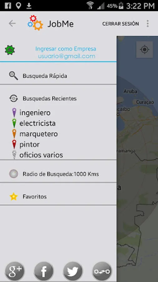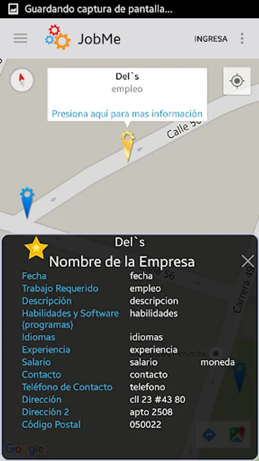 IMPORTANT: To make everyone aware of the services or jobs that you offer, you should enter as "Company", you register and place yourself marker where you want to provide your services or offer employment, fill your data and will be available online for the see other services or jobs that you offer.