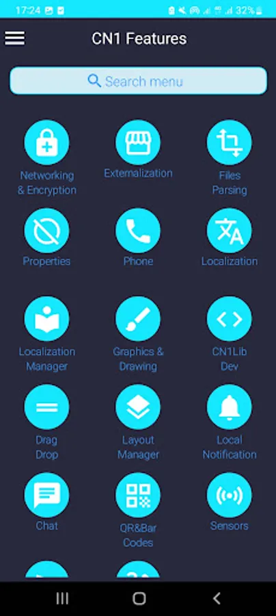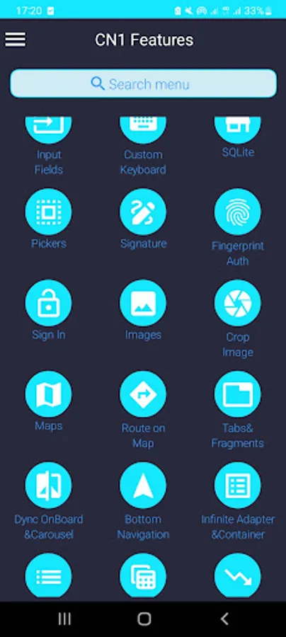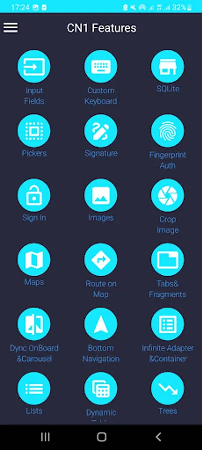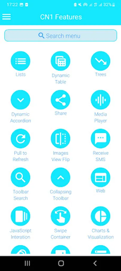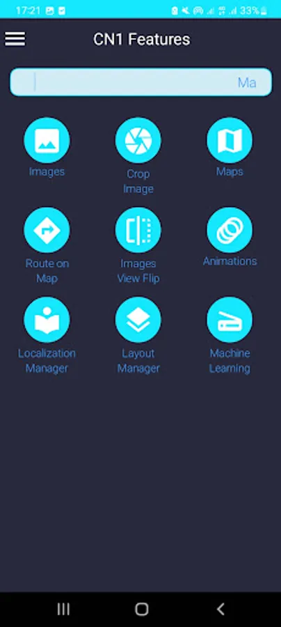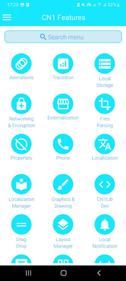 FeaturesCN shows implementation of Codename One Java cross platform features