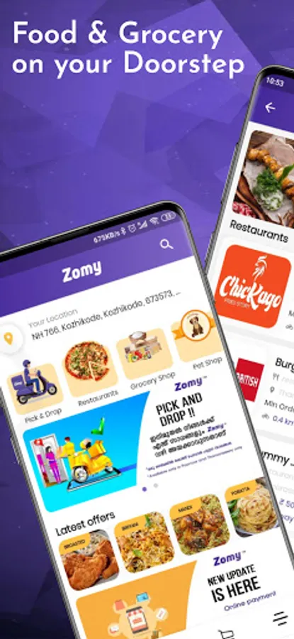 Using Zomy you can buy pretty much everything from your neighbourhood restaurant or supermarket, anywhere in your town or city.