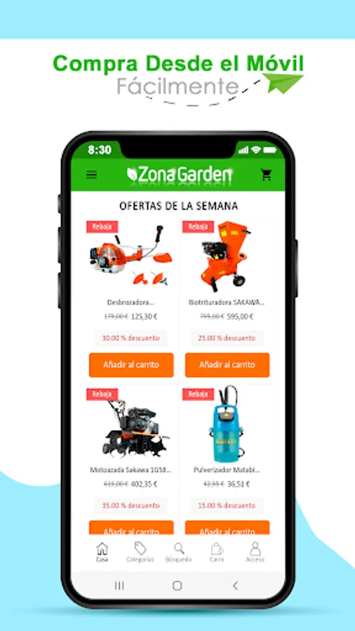 Hemos creado una aplicación diseñada para ti en la que podrás encontrar variedad de productos de estas categorías.