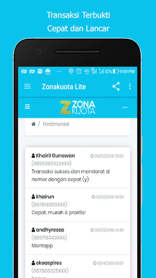 The cheapest credit and quota distributor in Indonesia, fast transactions, transaction services and 24-hour non-stop CS assistance! PROVE FOR YOURSELF by registering and making transactions at Zonakuota! ^ _ ^