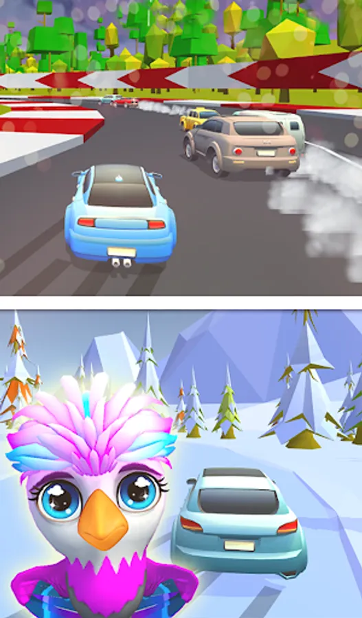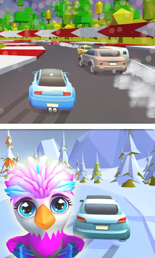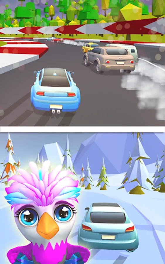 New RACING GAME: You can drive kinds of cars on the snow or grass ground, or you can race against other cars on the track. To beat them.