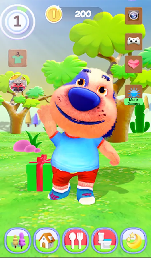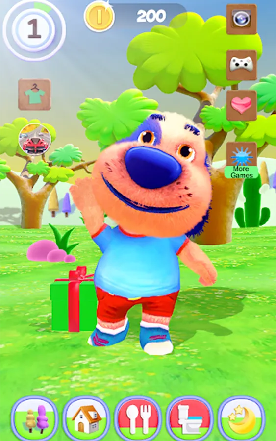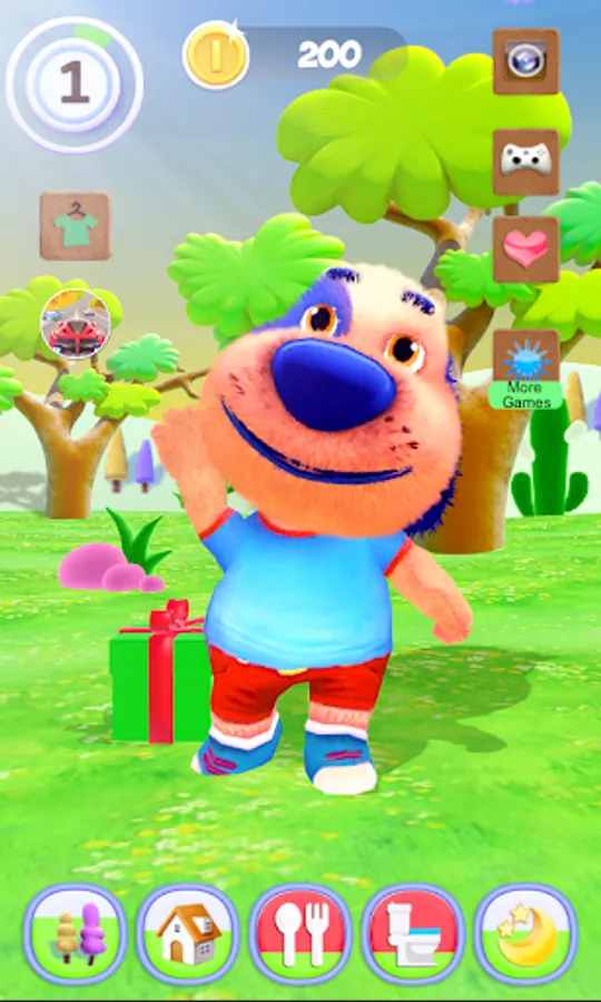 THE MOST BEAUTIFUL ENVIRONMENT:Talking Dog has a living room, a bedroom, a restaurant, a large lawn and a forest.