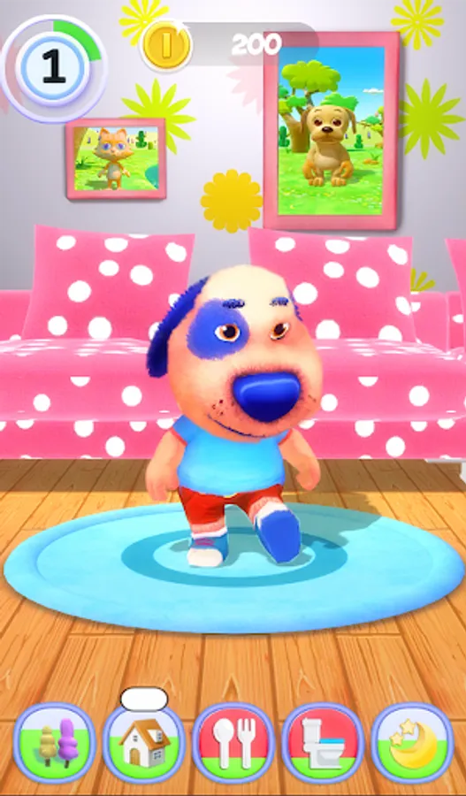EVERYDAY FUN: His bathroom is great, where he can take a bath. Wipe with him with a towel, so that the Dog is more clean and more lovely! There is a great bedroom great, he can turn off the lights there, full rest! We go to his living room, the sofa in front of you will see the lovely little Dog. Play tired, remember to feed Dog to eat, a variety of food choices.