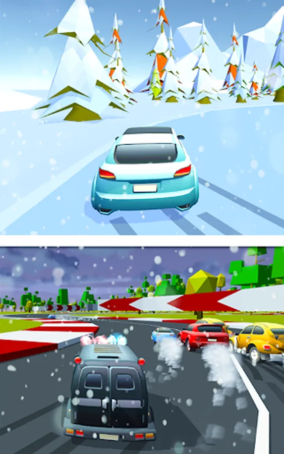 New RACING GAME: You can drive kinds of cars on the snow or grass ground, or you can race against other cars on the track. To beat them.