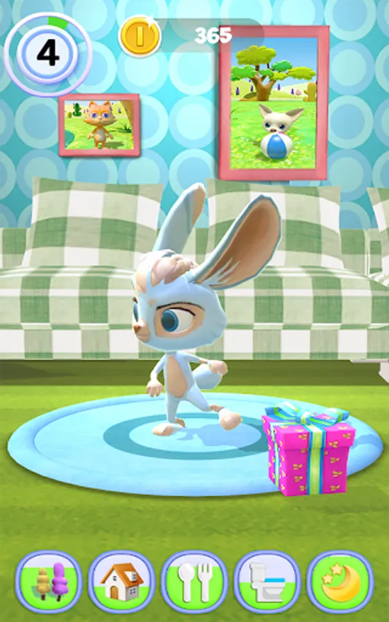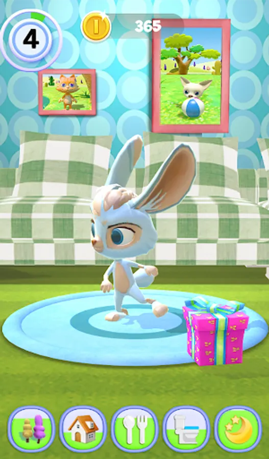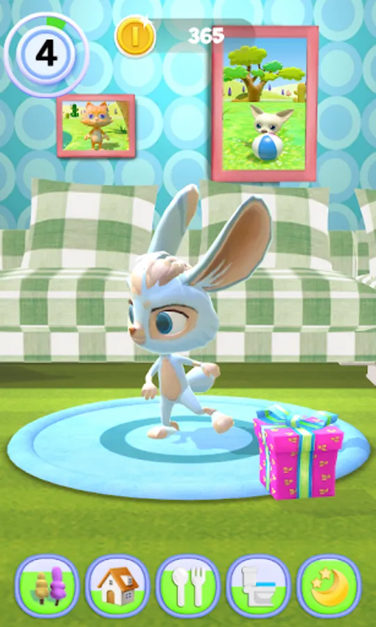 EVERYDAY FUN: His bathroom is great, where he can take a bath. Wipe with him with a towel, so that the Hare is more clean and more lovely! We go to his living room, the sofa in front of you will see the lovely little Hare. Play tired, remember to feed Hare to eat, a variety of food choices.