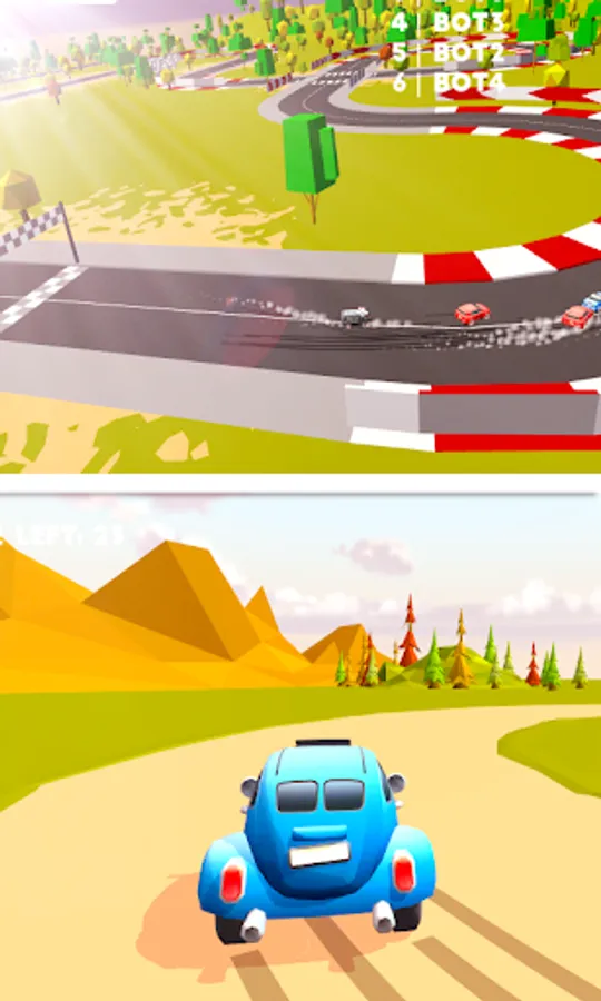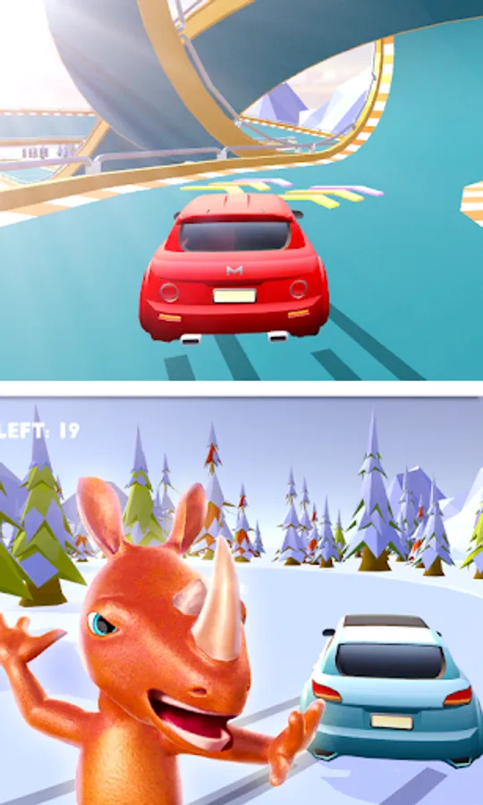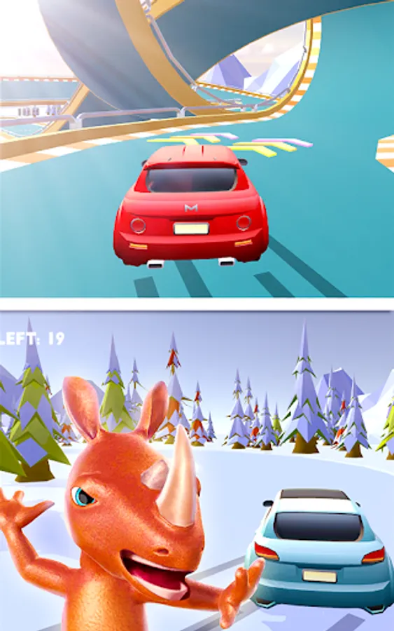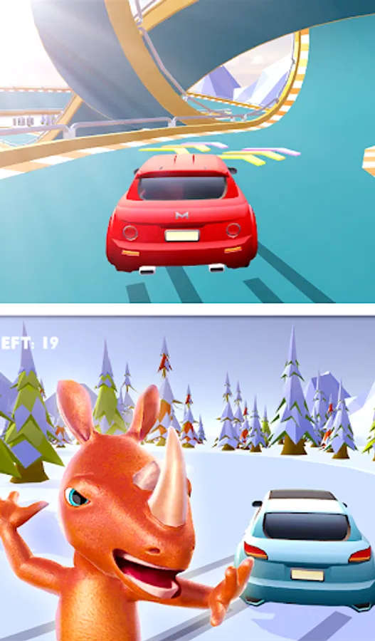 New RACING GAME: You can drive kinds of cars on the snow or grass ground, or you can race against other cars on the track. To beat them.