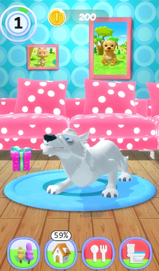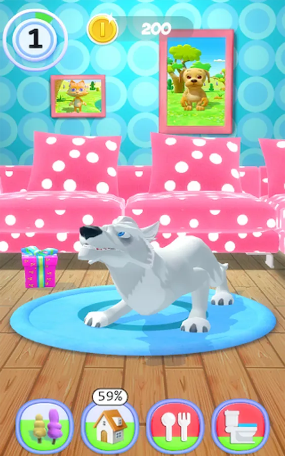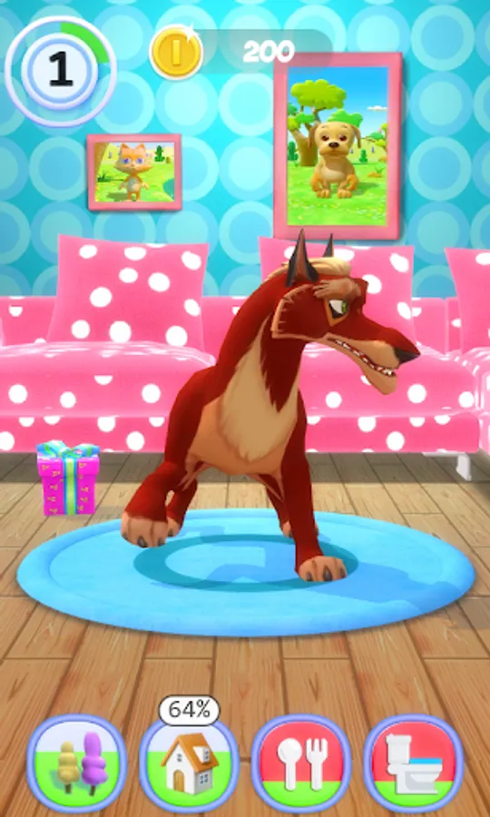 EVERYDAY FUN: His bathroom is great, where he can take a bath. Wipe with him with a towel, so that the Wolf is more clean and more lovely! There is a great bedroom great, he can turn off the lights there, full rest! We go to his living room, the sofa in front of you will see the lovely little Wolf . Play tired, remember to feed Wolf to eat, a variety of food choices.