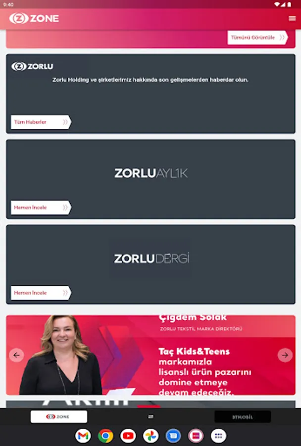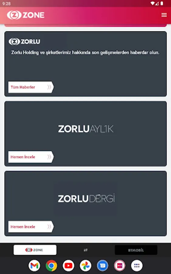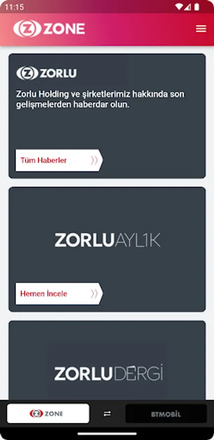 Zorlu Zone is a corporate communication application for Zorlu Holding employees. With the Zorlu Zone application, a mobile application of the Information Technologies Presidency was created and Information Technologies processes were gathered within the application with this application. By integrating with other applications within the company, users can follow all process flows from a single application.
