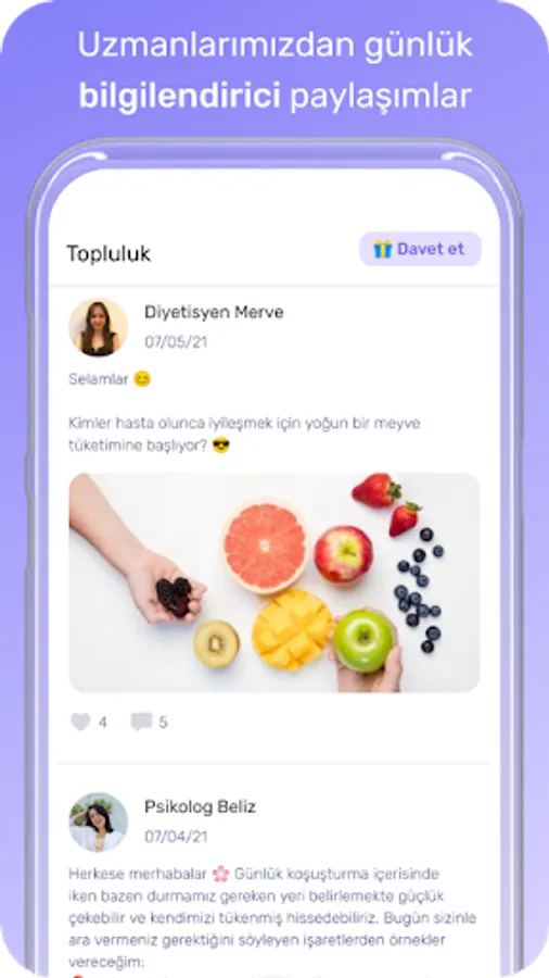 - Informative community sharing in the field of healthy diet, exercise and motivation from our dietitian, psychologist and trainer