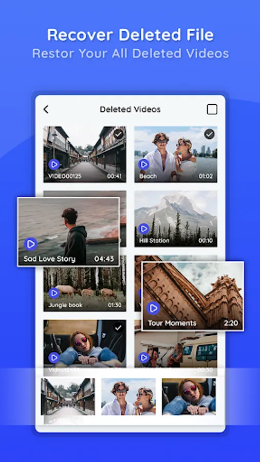 Video Recovery or Video Restore With this Photo & Video Restore or Photo Video Recovery app one can Restore Deleted Videos.
